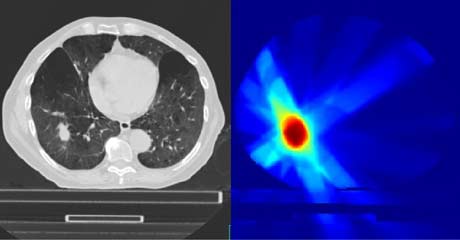 En esta línea buscamos optimizar el procedimiento y la dosis en el caso de tumores pulmonares y oculares empleando desarrollos propios tanto de equipamiento como de herramientas computacionales