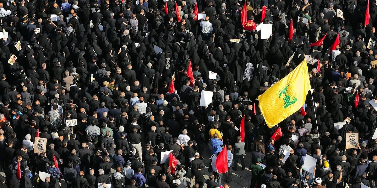 A Hezbollah’s flag during a mourning in Tehran in 2017 [Wilipedia]