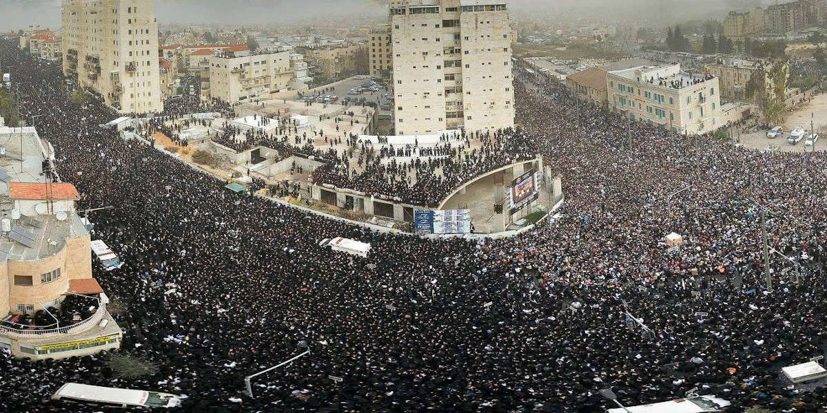 Haredi demonstration in Israel in 2014 against the conscription of yeshiva pupils [אלי סגל]