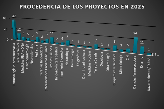 Todos los protocolos que han sido evaluados fueron presentados por investigadores del CIMA, UNAV o CUN, a excepción de un proyecto presentado por Navarrabiomed/IDISNA y 11 protocolos presentados por empresas externas. Como en años anteriores, la mayor parte (62%) de los protocolos y enmiendas totales proceden de investigadores del CIMA, destacando aquellos presentados por personal de las áreas de Inmunología e Inmunoterapia. El 23% de los protocolos y enmiendas totales proceden de la Universidad. Pertenecen en su mayoría, al departamento de Ciencias Farmacéuticas. En el caso de aquellos presentados por investigadores vinculados a la CUN, el 8% del total, proceden, en su mayoría, del Área de Terapia Celular. El 7% de protocolos restantes pertenecen a solicitudes externas.
