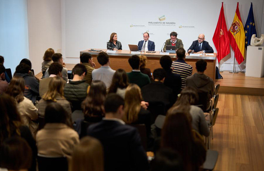 El Parlamento de Navarra acogió una mesa redonda en la que participaron los profesores Ana Azurmendi (Universidad de Navarra), Rafael Rubio (Universidad Complutense de Madrid) y Abraham Barrero (Universidad de Sevilla)