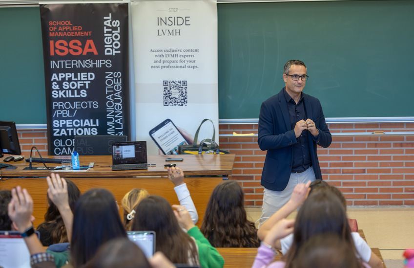 ISSA School of Applied Management ha celebrado las Jornadas Sectoriales del primer semestre, dedicadas al Luxury & Fashion Business. Más de 200 estudiantes de diferentes grados asistieron a las jornadas para escuchar a Alicia García de Lomas, High-End Project Coordinator en Cartier; Anna Maria Kwiecinska, Project Analyst en Calvin Klein (grupo All We Wear) y Victor Rovira, Internal Production Director en Loewe (grupo LVMH).
