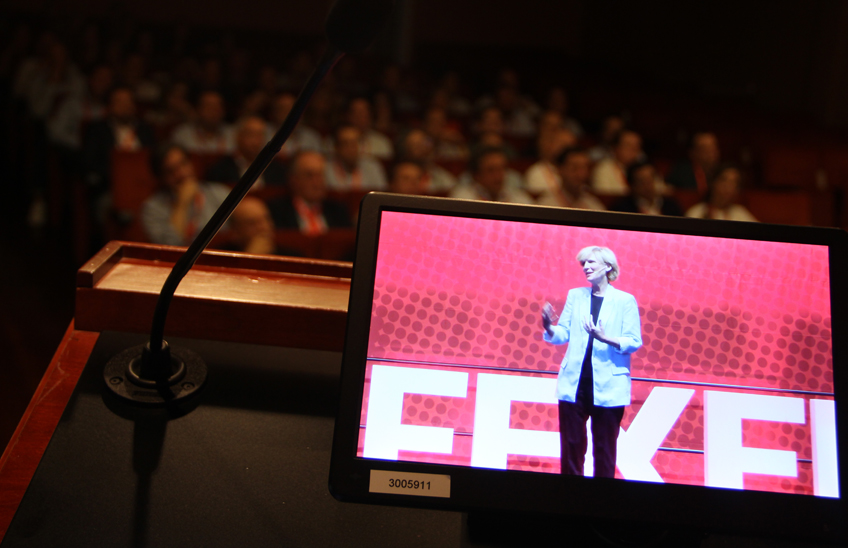 Los 55 alumni reunidos en San Sebastián se conectaron en directo para seguir la intervención de la rectora de la Universidad de Navarra, María Iraburu, quien se dirigió desde el polideportivo de Pamplona a los asistentes del evento celebrado allí. Su exposición ofreció una visión detallada de la estrategia de la Universidad para los próximos cinco años.