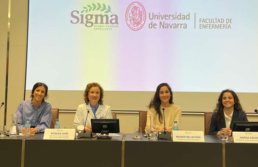 El acto fue moderado por la enfermera y responsable de Relaciones Internacionales y Alumni de la Facultad de Enfermería, Clara Cabrera y contó con las intervenciones de Rosana Goñi, enfermera de Práctica Avanzada en la CUN; la profesora de la Facultad de Enfermería Maider Belintxon; y la estudiante de cuarto curso del Diploma Liderazgo, Investigación y Docencia, Naroa Asiain.