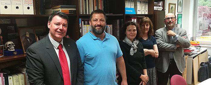 En el marco de su visita, el 24 de mayo, el profesor Liebhaber, acompañado por Ruth Breeze y Sarali Gintsburg (Universidad de Navarra, ICS), mantuvo una reunión de trabajo con Carlos Mata y Jesús M. Usunáriz, investigadores del Grupo de Investigación Siglo de Oro (GRISO), con el tema común de las Humanidades Digitales.