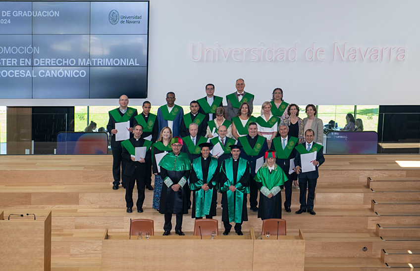 El pasado 22 de junio los alumnos de la primera promoción del Máster de Formación Permanente en Derecho Matrimonial y Procesal Canónico vivieron el día de su graduación en la Sede de Posgrado de la Universidad de Navarra.