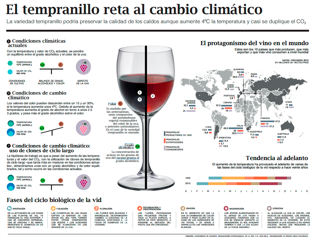 Por este motivo el proyecto se centra en la variedad tempranillo, una variedad de ciclo más corto que otras variedades (de ahí su nombre) que tienen una amplia distribución en muchas zonas vinícolas.