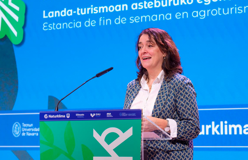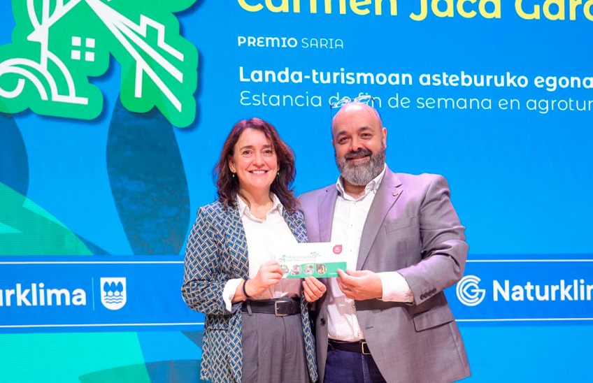 La profesora e investigadora, Mentxu Jaca, recibió de manos del director general de Naturklima, Xabier Esteban Alonso, el premio del reto universitario, en reconocimiento a su labor de introducir los conceptos de sostenibilidad y hábitos sostenibles en la educación universitaria. Este galardón consiste en una estancia de un fin de semana en un agroturismo.