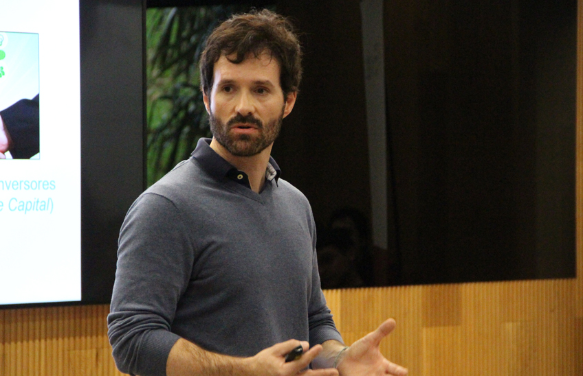 El CEO de Polimerbio, Pablo Fernández, fue el primero en presentar su caso de éxito, una empresa biotecnológica dedicada al desarrollo de productos sanitarios biodegradables a partir de polímeros. Durante su intervención, explicó las distintas fuentes de financiación de la compañía y señaló que el equipo está formado por ocho personas.