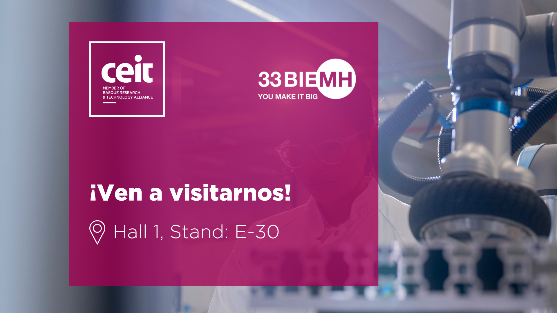 El centro tecnológico Ceit volverá a tener una presencia destacada en la Bienal Internacional de Máquina Herramienta (BIEMH) 2026, que tendrá lugar del 2 al 6 de marzo en el Bilbao Exhibition Center (BEC) de Barakaldo, Bizkaia.