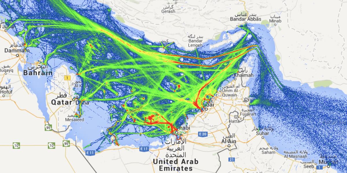 Vessels traffic trough the Hormuz Strait in normal times [marinevesseltraffic.com]
