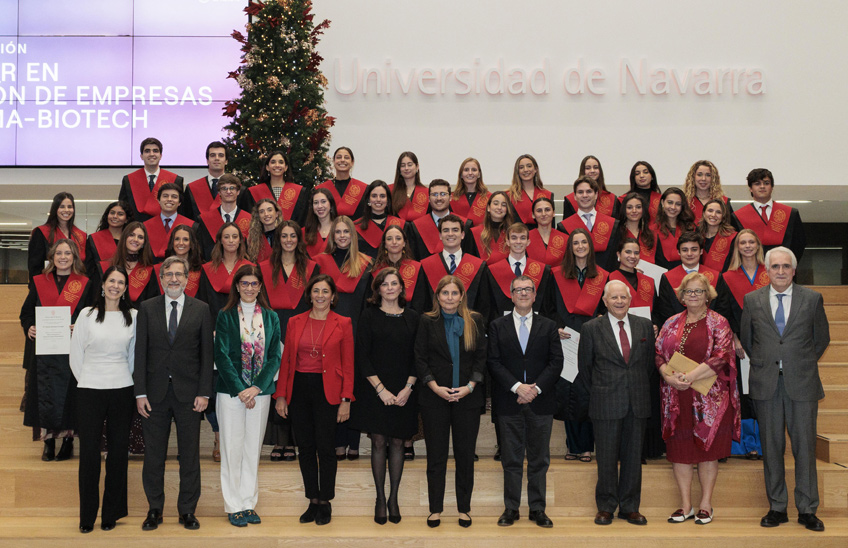 Durante el mes de diciembre, la Facultad de Farmacia y Nutrición ha celebrado los actos de clausura de dos de sus programas de posgrado, el Máster en Gestión de Empresas Pharma-Biotech (MUGEP) y el del Máster en Diseño Galénico y Fabricación en la Industria Farmacéutica (MDGFIF) en Madrid y Pamplona, respectivamente.