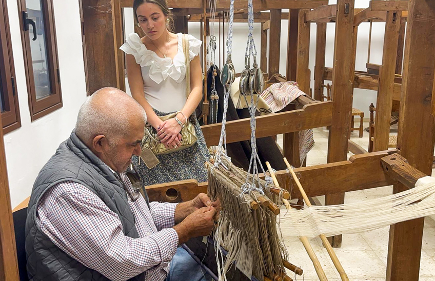 Por otro lado, los alumnos descubrieron el hilado, el teñido y el tejido de la seda en el Museo de la Seda Las Hilanderas, donde trabajan María Solbeida Marante y Antonio Bermúdez, dos artesanos de la isla que preservan la traición del oficio. Ambos explicaron a los estudiantes los procesos de elaboración de pañuelos y otras prendas de seda. “Cada hilo parecía contar una historia, uniendo pasado y presente a través del oficio”, describe Javier Millán.