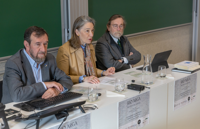 En el acto de apertura del congreso, presidido por Julia Pavón, decana de la Facultad de Filosofía y Letras, participaron Luis Colina, secretario de la Fundación Diario de Navarra, y Juan Ramón Corpas Mauleón, director de Río Arga. En sus palabras de presentación, la decana destacó que “las revistas han sido —y siguen siendo— laboratorios de libertad: espacios frágiles y persistentes donde la poesía ensaya su porvenir. En ellas late una historia cultural que no siempre figura en los manuales, pero que ha sostenido generaciones enteras de lectores y escritores”. Asimismo, subrayó la importancia del encuentro como escenario para “reconocer la capacidad de la poesía de fundar sentido”.