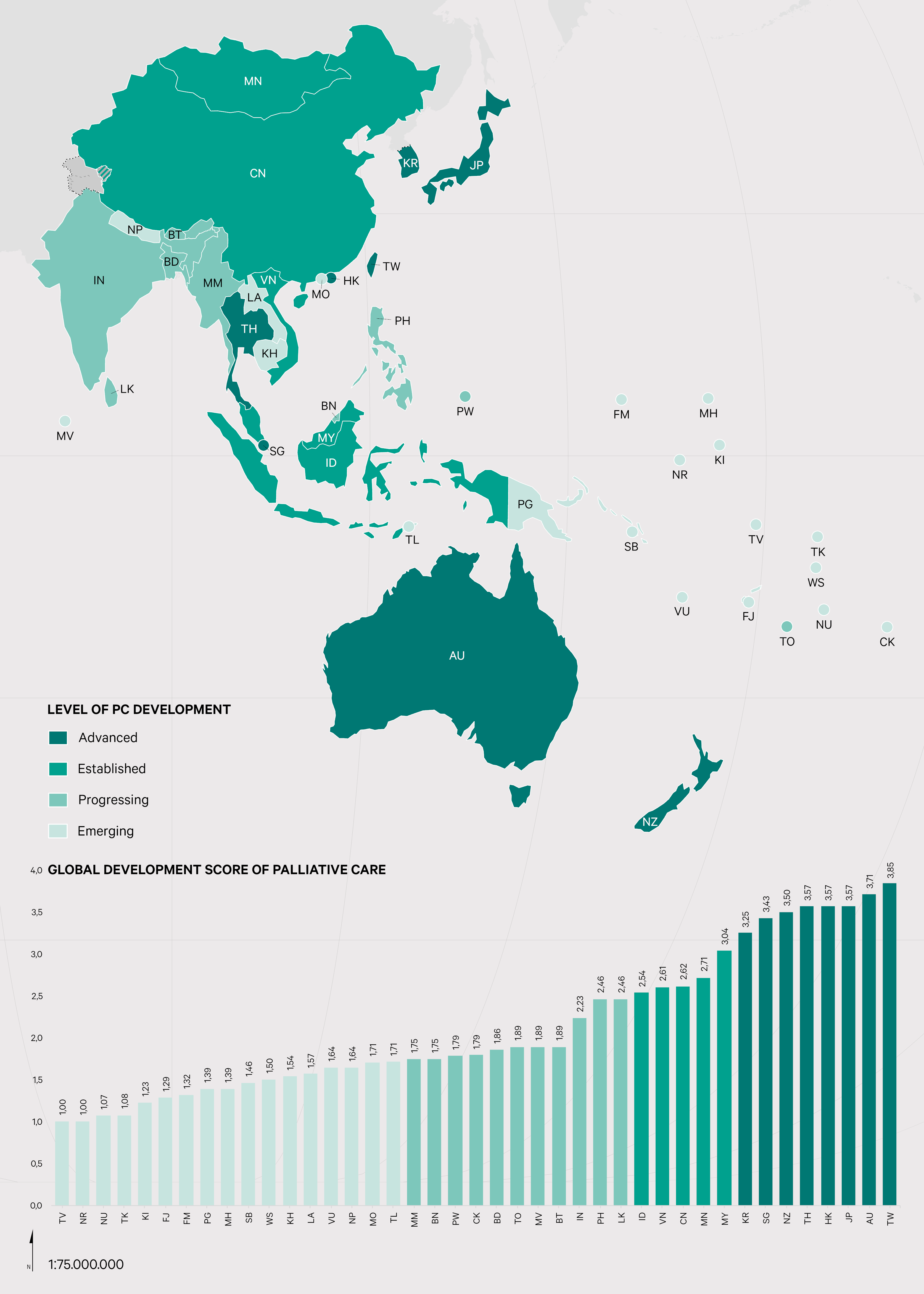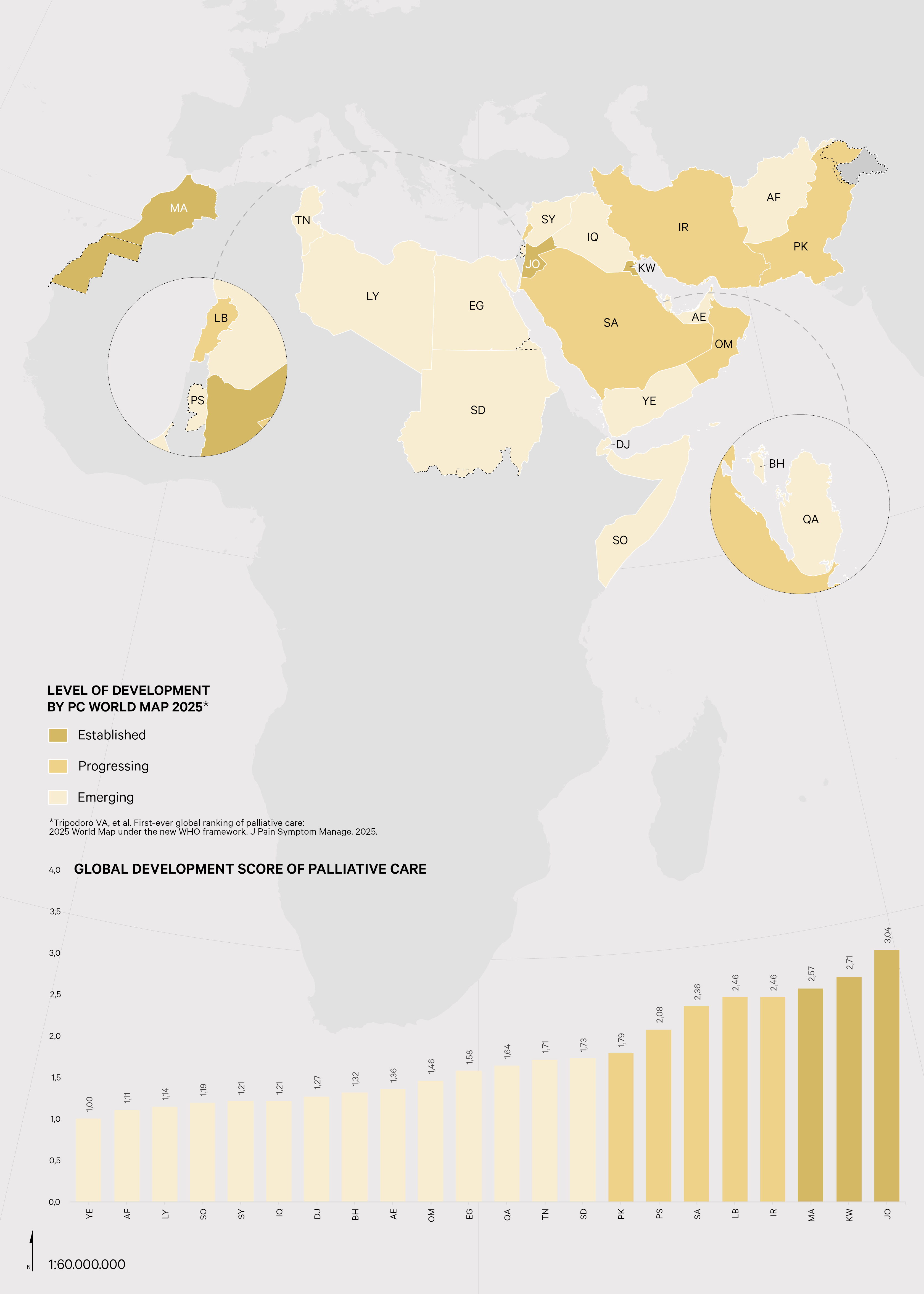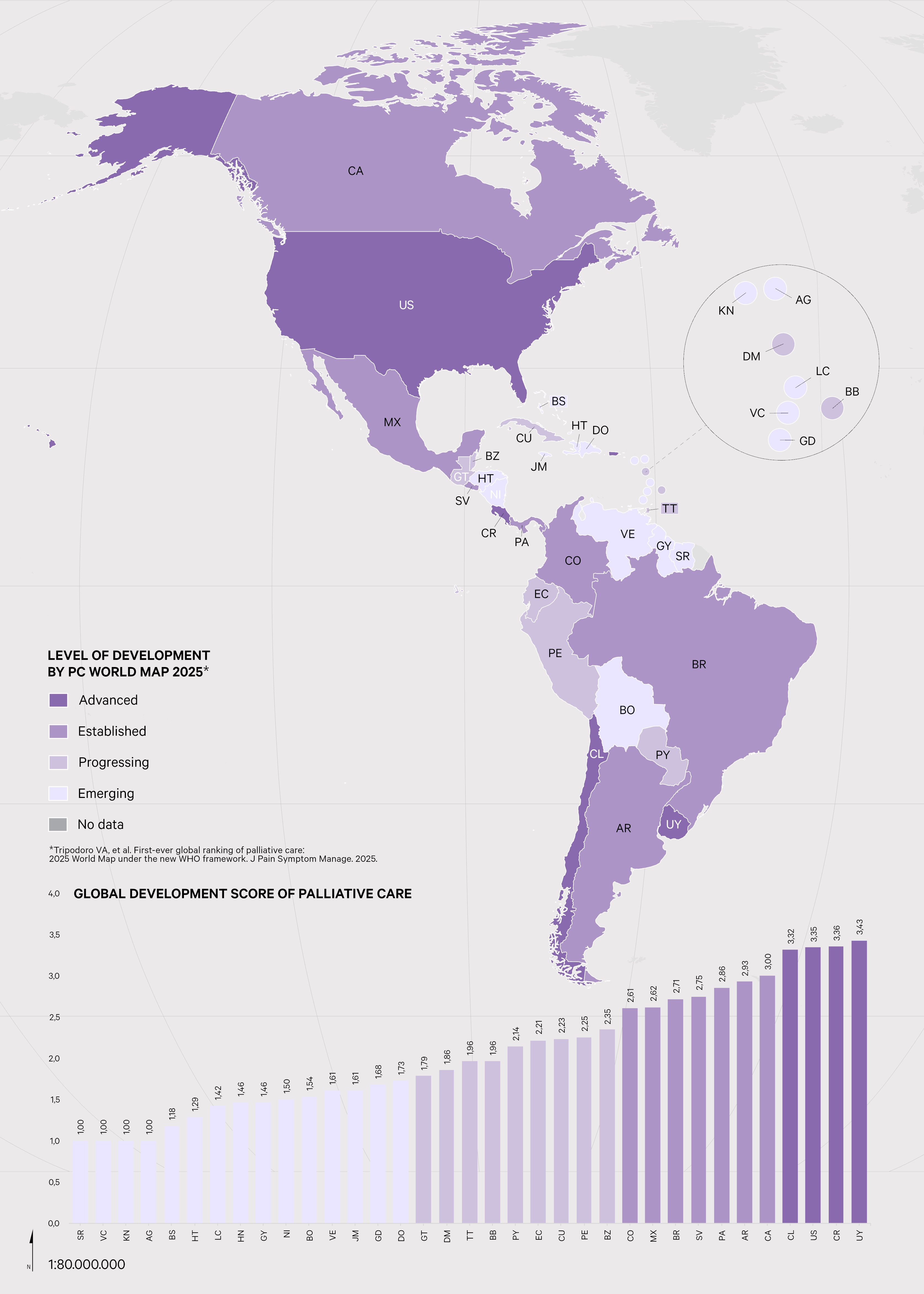The World Map of Palliative Care, promoted by the ATLANTES Global Observatory of Palliative Care at the Institute for Culture and Society (ICS), provides a comparative analysis of 201 countries and territories, representing over 99% of the world’s population. It includes the first Global Palliative Care Ranking. This pioneering research was conducted following the WHO framework and a standardized methodology, with the collaboration of the Worldwide Hospice Palliative Care Alliance (WHPCA).