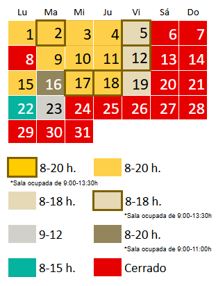 El horario en diciembre es de lunes a jueves de 8 a 20 h y viernes de 8 a 18 h, a excepción de los siguientes días: