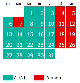 El horario en agosto es de lunes a viernes de 8 a 15 h, a excepción de los siguientes días: