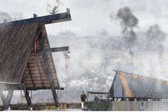 La propuesta realiza una profunda investigación en los valores culturales del territorio en el cual se implanta, recuperando la tradición constructiva propia del lago e implantando una nueva lectura tipológica y topológica de esta arquitectura enraizada en la construcción y sus valores.