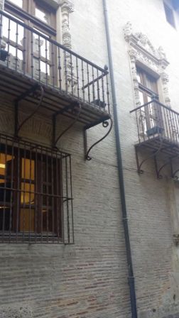 Con este espíritu humanista se erige un palacio de bella fachada donde predomina el ladrillo y que destaca por su monumental verticalidad. La portada presenta una rica ornamentación de grutescos y se completa por un segundo piso en el que destacan dos ornados balcones. En el de la izquierda se representan cuatro de los doce trabajos a los que se vio sometido el mítico Heracles. Durante el Renacimiento, los dioses de la mitología griega y romana se convirtieron en ejemplos de virtud, constituyendo modelos a seguir por el hombre cristiano, de tal forma que sus hazañas fueron entendidas como ejemplos doctrinantes, realizándose una lectura de estas en clave moral, escondiéndose detrás de cada episodio una verdad aplicable a la vida cotidiana. Heracles pasará a ser un modelo de virtud, ganando la inmortalidad en base a su denodado trabajo por imponer el bien y acabar con los vicios. Por esto adquiere un carácter protector de las casas pues “no dejaba pasar ni males ni malos”.
