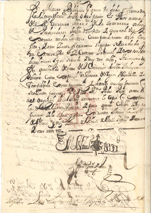 Reproducimos el texto de la certificación del prior por su obvio interés, dado el escaso número de este tipo de documentos. Su texto reza: “Certifico yo el maestro en Sagrada Teología, fray Mauro Rodríguez, Prior actual del Real Convento de Nuestra Señora de la Soterraña, orden de Predicadores, desta villa de Santa María la Real de Nieva, en el obispado de la ciudad de Segovia, especialísima defensora de rayos y centellas, como he tocado por mi misma persona a el original de dicha milagrosísima imagen, una copia suya en pintura de vara y media algo más de largo y cinco cuartas escasas de ancho con su vestido azul y una espiga en la mano izquierda y un cetro en la derecha, con sus dos faroles a los lados y tres milagros a el pie, los dos de su gloriosa aparición y el otro de la libertad y estrago de un rayo, con sus rótulos, la que se me dice va por devoción a la ciudad de Pamplona. Y para que así conste, doy la presente firmada de mi mano en el dicho Real convento a diez y nueve de abril de mil setecientos y treinta y tres años. Fray Mauro Rodríguez, Presentado y Prior”. La autentificación notarial no añade sino el detalle de que el acto de tocar al original se hizo en el camarín de la Virgen en su presencia y la de otras personas, cuyos nombres no especifica.