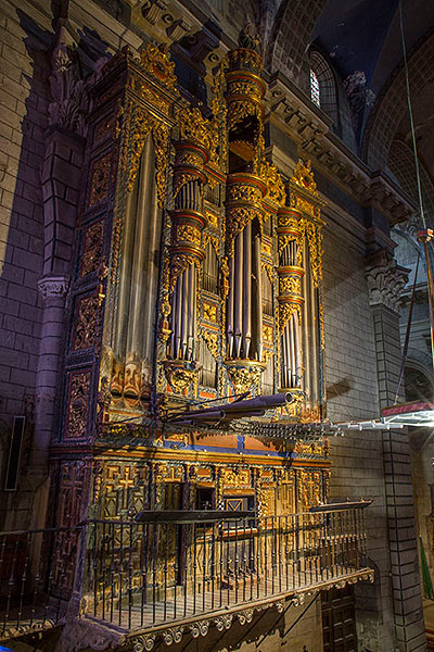 Junto al coro, en una tribuna situada a su misma altura en el lado del Evangelio se emplaza el órgano. De 1738, la traza es obra del organero lerinés Joseph de Lesaca. La caja, de madera de pino y policromada en rojo, azul, dorado y marrón, se articula en doce castillos en donde se alojan los tubos llamados canónigos. Característica es la trompetería de dos y tres niveles en horizontal o artillería, típicamente ibérica, y los tubos contras con caras pintadas. Del instrumento del siglo XVIII queda muy poco puesto que en 1859 se repuso parte por Manuel López de Cardiñanos de Briones (La Rioja). Tras los daños sufridos en la Guerra Carlista, en 1879 es vuelto a reparar hasta que a mediados del siglo XX queda por fin mudo a la espera de una conveniente restauración que devuelva su antiguo esplendor al instrumento.