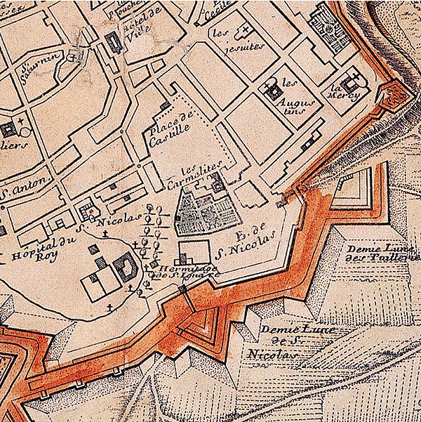El propio lugar recuerda el sitio donde cayó herido el santo con bastante precisión, junto al castillo. También nos recuerda la primera memoria erigida nada más comenzar el siglo XVII, en unos momentos de transformación de aquel paraje, con la construcción del convento de San José de las Carmelitas Descalzas y de “construcción” del proceso que llevaría a los altares al de Loyola. La segunda mitad de aquel siglo XVII nos presenta el testigo de la arquitectura de la actual basílica, erigida a instancias de don Diego de Benavides, conde de Santesteban, virrey de Navarra entre 1653 y 1661, de donde pasó a Perú con el mismo cargo. En este último virreinato, contactó con algunos jesuitas navarros que juntaron donativos remitidos para la realización de un monumento al santo, en recuerdo de su herida en la defensa del castillo de Pamplona.