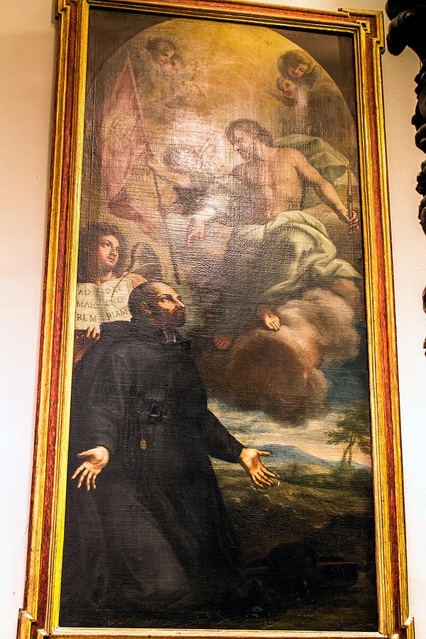 De la Ciudad Eterna también llegaron otras pinturas, una de gran tamaño del santo ante el Resucitado, una pareja de san Ignacio, y dos más pequeñas de san Luis Gonzaga y san Estanislao de Kostka, enmarcadas todas en 1749. El de la aparición del Resucitado es, en realidad y como me ha hecho notar el padre Javier Sagüés, la aprobación del nombre de la Compañía con el beneplácito del mismísimo Cristo, allá por 1537. El padre Juan Antonio Polanco, burgalés, secretario de san Ignacio y de la Compañía, escribe un capítulo titulado De Societatis Jesu nomine, en el contexto de antes de la llegada a Roma, en Vicenza, en septiembre de 1537, en donde se propuso la cuestión del nombre: