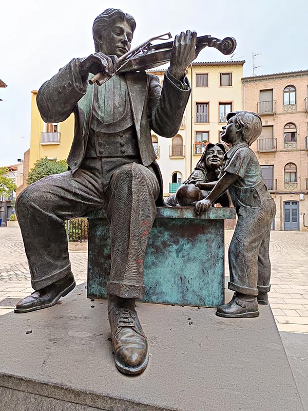 El 22 de noviembre de 2002, coincidiendo con la festividad de santa Cecilia, patrona de la música, Tudela inauguró el Monumento al Violinista en la plaza Mercadal, frente al centro cultural Castel Ruiz. La elección de la fecha y del emplazamiento no fue casual: se buscaba celebrar el valor universal de la música y, al mismo tiempo, vincular el monumento a Castel Ruiz, sede de la Escuela de Música Fernando Remacha y de otras iniciativas culturales de la ciudad. Con ello, el Ayuntamiento quiso subrayar la importancia de la música en el patrimonio cultural tudelano.