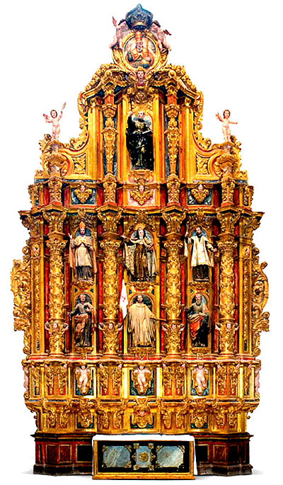 La pujanza del gremio hizo que en 1730 se contratase un gran retablo bajo su advocación con José Serrano, el único de gran envergadura del templo cisterciense que costeó una institución ajena al monasterio. El mismo maestro se ocupó de la abundante imaginería del retablo, realizándola según lo dispuesto en el contrato y en un deliberado programa de exaltación de los valores de la iglesia local (San Raimundo de Fitero), del reino de Navarra (los copatronos San Fermín y San Francisco Javier), de España (Santa Teresa patrona de la cofradía) agregándose la escultura de San Ignacio de Loyola, en recuerdo del monje roncalés que administraba los bienes de la cofradía, fray Ignacio de Zubialde. La rica policromía de oros y de las vestiduras de los santos con ramilletes, hojas y flores ejecutados a punta de pincel, a una con las ricas encarnaciones generalmente mates, otorgan al conjunto una singular belleza y, junto con sus dimensiones y ubicación en el magnífico crucero del templo cisterciense, hace que nos encontremos ante uno de los grandes y originales retablos del foco tudelano en el siglo XVIII.