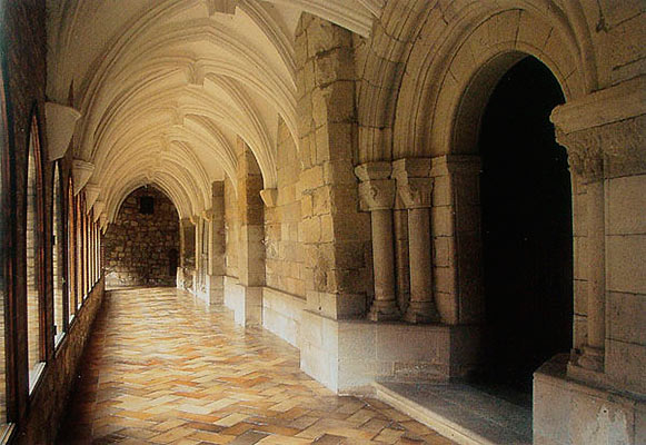 El claustro fue otro de los espacios del monasterio que en el siglo XVI que fue cubierto con bóvedas de crucería. La cubrición nervada se debió a la iniciativa de la abadesa Doña Ana de Beaumont, bajo cuyo mandato en la década de 1520 el maestro Francisco el Darocano la construyó. Las bóvedas nervadas se apoyan en ménsulas suspendidas a mitad de muro según es característico del Cister. Los arcos externos de la galería claustral son obra nueva mientras que en los muros internos del claustro se conservan restos medievales, especialmente en el muro de la iglesia. En él se encuentra una portadita de acceso al interior de aquélla. Esta es una portada con esquema sencillo, compuesta por dos arquivoltas sobre pares de columnas acodilladas con capiteles de hojas de palmeras, volutas, piñas e incisiones. También se conservan algunos otros restos medievales tales como una arquería sobre dobles columnas y vestigios de un sepulcro gótico adosado al muro bajo arco apuntado, todo ello muy restaurado.