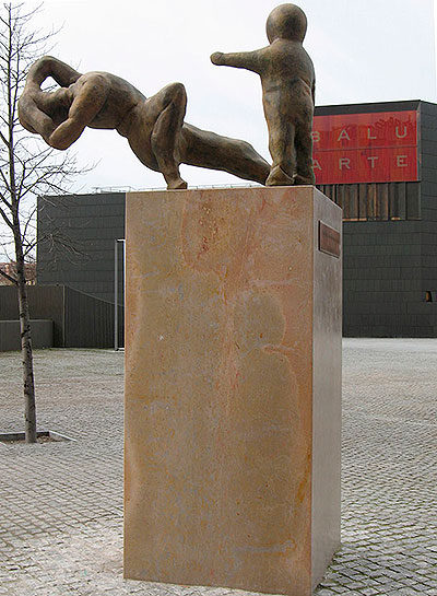 Medidas: Hombre: 220 cm; Niño: 112 cm; Basamento: 260 x 120 x 120 cm.