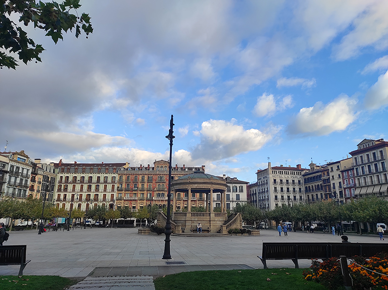 Durante el siglo XIX la plaza sufrió transformaciones importantes. Algunos edificios fueron sustituidos, otros renovados e incluso recrecidos, introduciendo además casinos, cafés y hoteles para dar servicio a los nuevos usos sociales. Urbanísticamente el gran cambio se desarrolló en el flanco sur. Sobre el solar de las carmelitas que abandonaron su convento con la desamortización, entre 1840 y 1851 se levantó un largo frontispicio neoclásico que acogía el Teatro principal en el centro, flanqueado por el Crédito navarro a un lado y la Diputación al otro, donde intervinieron los arquitectos Manuel Ugartemendía y José Nagusia. Con el desarrollo del II Ensanche, en 1931 se derribó el teatro, para abrir la actual avenida de Carlos III, que conectó la plaza y el casco histórico con la nueva ciudad. Poco después, en 1943, se ubicó en el centro el quiosco de música.