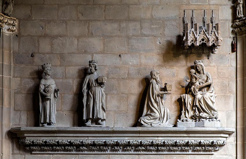 FotoCedida/Grupo de la Epifanía en el claustro de la catedral de Pamplona por Jacques Perut, comienzos del siglo XIV