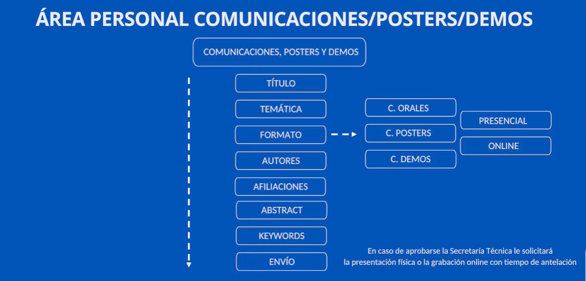 Al presentar las comunicaciones, se podrá indicar la preferencia hacia el tipo de comunicación, pero el formato final será recomendado por el Comité Científico del Congreso.