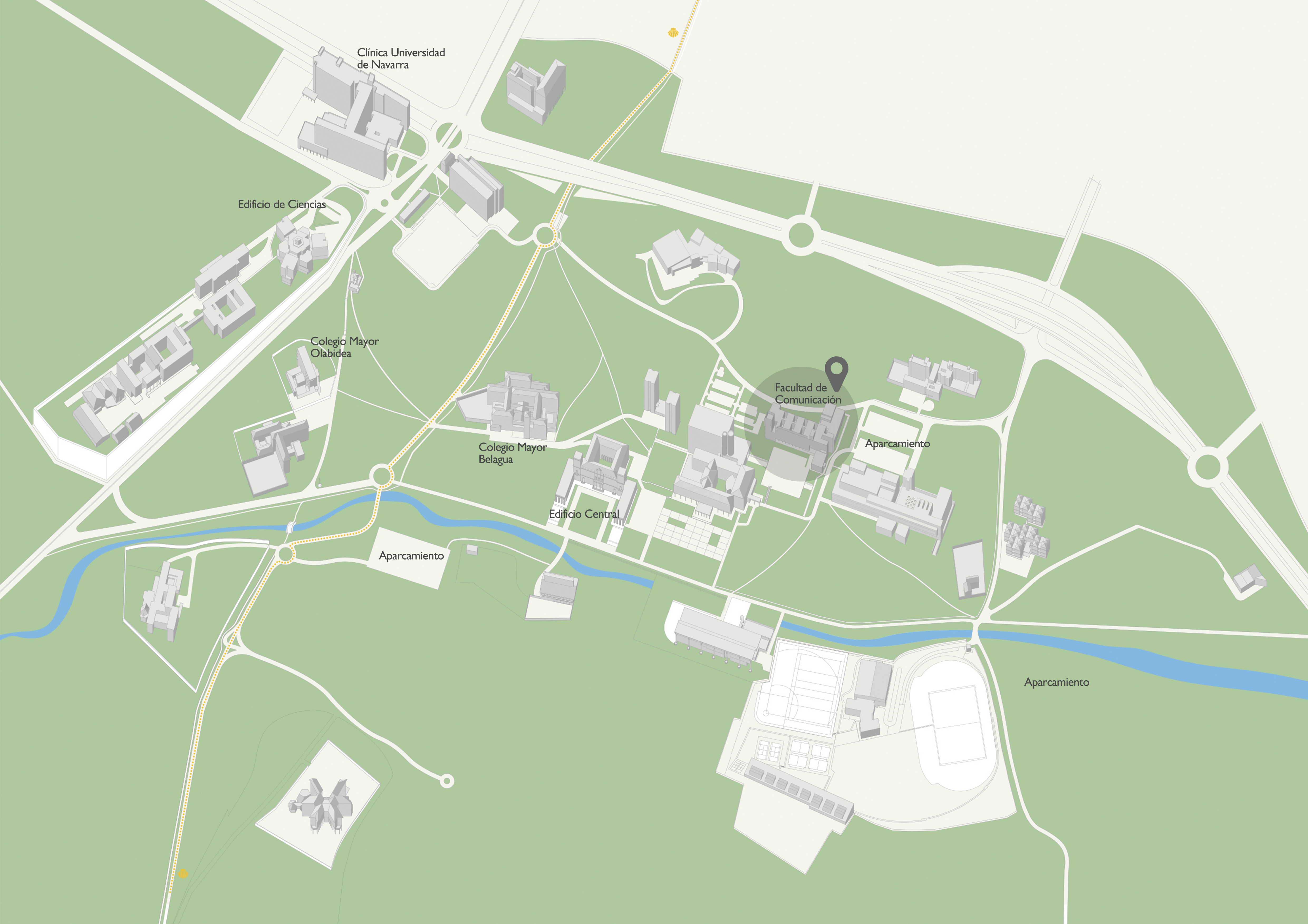 Se encuentra ubicada en la parte de abajo del campus de la Universidad de Navarra, muy cerca del Edificio Central y la Biblioteca de Humanidades.