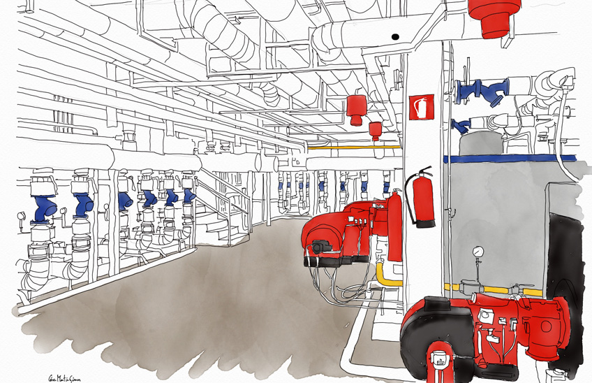 La asignatura sobre instalaciones técnicas nunca fue una de las más sencillas para conectar con los alumnos de arquitectura y la irrupción de la pandemia en 2020 no mejoró la situación, explica César Marín-Gómez, profesor de la Escuela de Arquitectura de la Universidad de Navarra. El reto que supusieron las pantallas y las clases online le animó a convertir esa dificultad en una oportunidad divulgativa, y así nació "Instalomía dibujada", una exposición que transforma sistemas de instalaciones técnicas y energéticas en representaciones digitales.