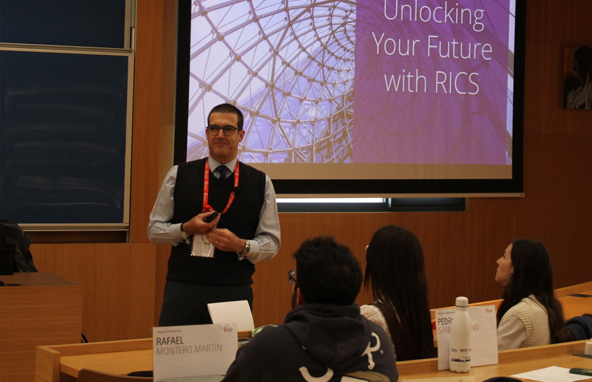 Finalmente, en la sesión sobre Royal Institute of Chartered Surveyors (RICS) con Alfonso Valero, vimos que el Máster en Real Estate es el único máster acreditado por dos itinerarios RICS, lo que supone una ventaja competitiva internacional y de diferenciación.