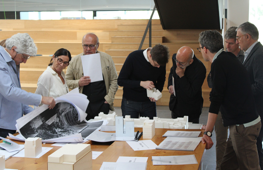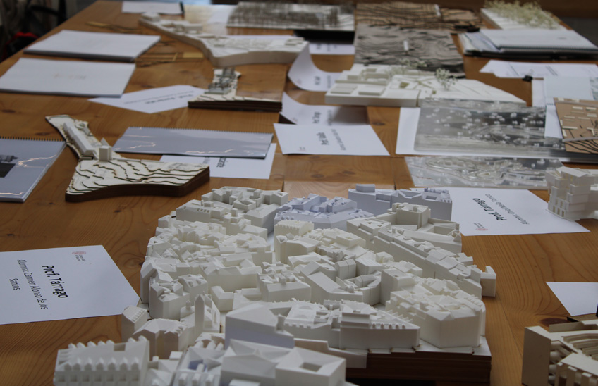 El atrio de la Sede de Posgrado de la Universidad de Navarra se ha adornado con las maquetas de los trabajos académicos culminantes del alumnado del Máster Universitario en Arquitectura (MUA), el Doble Máster en Arquitectura y Real Estate (MAR) y el Doble Máster en Arquitectura y Sostenibilidad (MAS). Esta entrega representa la segunda fase de sus Proyectos Fin de Carrera (PFC), que se dividen en Croquis, Básico y Ejecución. Los tutores encargados Jorge Tárrago, Mayka García Hípola, Carlos Brage, Antonio Vaillo, César Azcárate, Elisabeth Ábalo, Ramón Fernández-Alonso y Alberto Veiga han estado presentes, junto al Presidente del Tribunal, Miguel Ángel Alonso del Val, para valorar en conjunto los avances en cuanto al diseño, estructuras e instalaciones del alumnado.