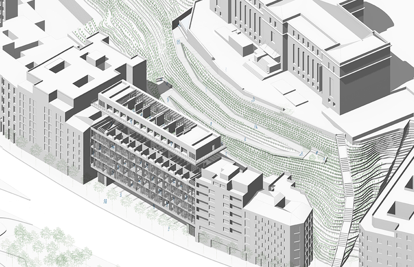 Irene de la Torre presenta un coliving intergeneracional ubicado entre Atocha y El Retiro como la intención de fomentar “el cuidado mutuo y la creación de vínculos sociales a través de la convivencia y el contacto con la naturaleza". La propuesta incluye espacios comunes y rincones individuales para potenciar las relaciones intergeneracionales y paliar la soledad.