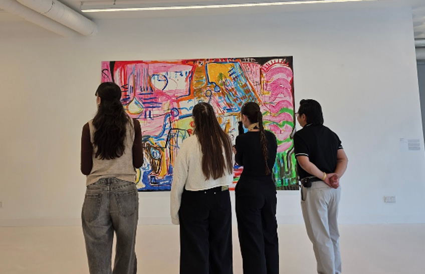 La cuarta visita se desarrolló en Azkuna Zentroa, donde el grupo se reunió con la artista Marisa González. Con un cálido recibimiento, la artista compartió desde sus experiencias hasta los retos enfrentados a lo largo de su trayectoria. Junto a ella, los alumnos recorrieron el espacio expositivo, descubriendo cómo cada pieza se articulaba con el lugar a través de una narrativa que la propia artista fue revelando.