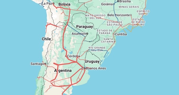 El mapa de los gasoductos en Sudamérica