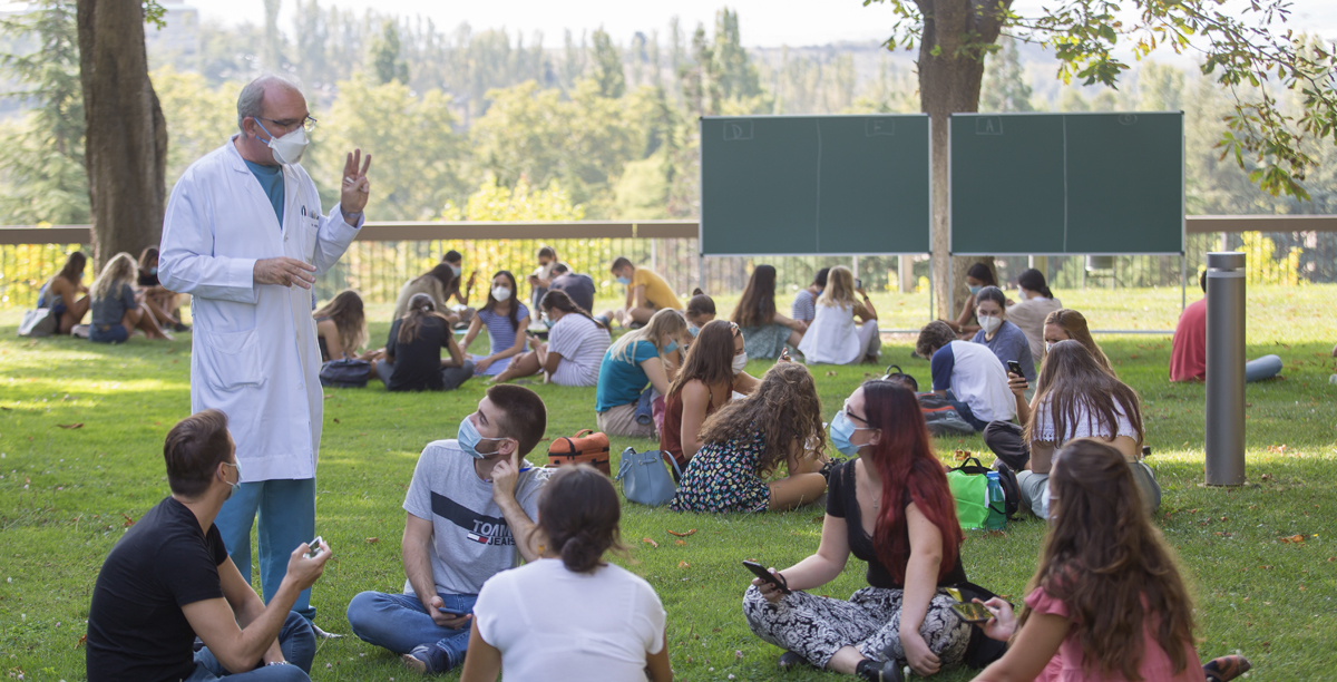 En tiempos de coronavirus, tanto la Universidad de Navarra como la Facultad de Medicina han implementado, desde el comienzo de la pandemia, medidas de seguridad preventivas para garantizar que las clases, las prácticas y la vida universitaria puedan continuar desarrollándose con normalidad. Además, los estudiantes de tercero a sexto del Grado en Medicina que realizan prácticas clínicas en centros sanitarios fueron vacunados por el Gobierno de Navarra el 24 de febrero de 2021.