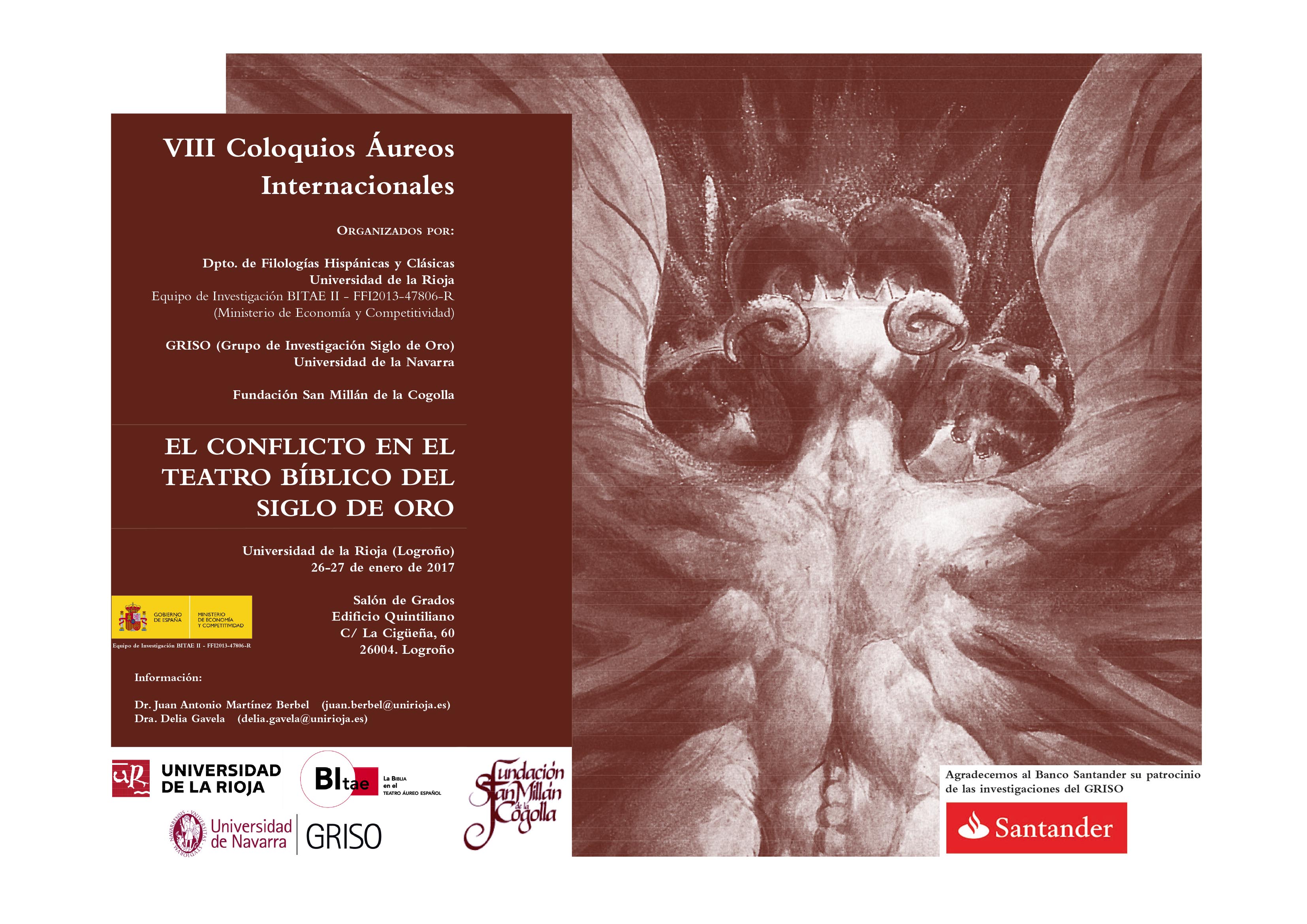 → Congreso Internacional «El auto sacramental en el Siglo de Oro. El maestro Calderón», organizado por GRISO-Universidad de Navarra, Pamplona (España), Universidad de Navarra, 9-11 de abril de 2018. [Cartel] [Programa]