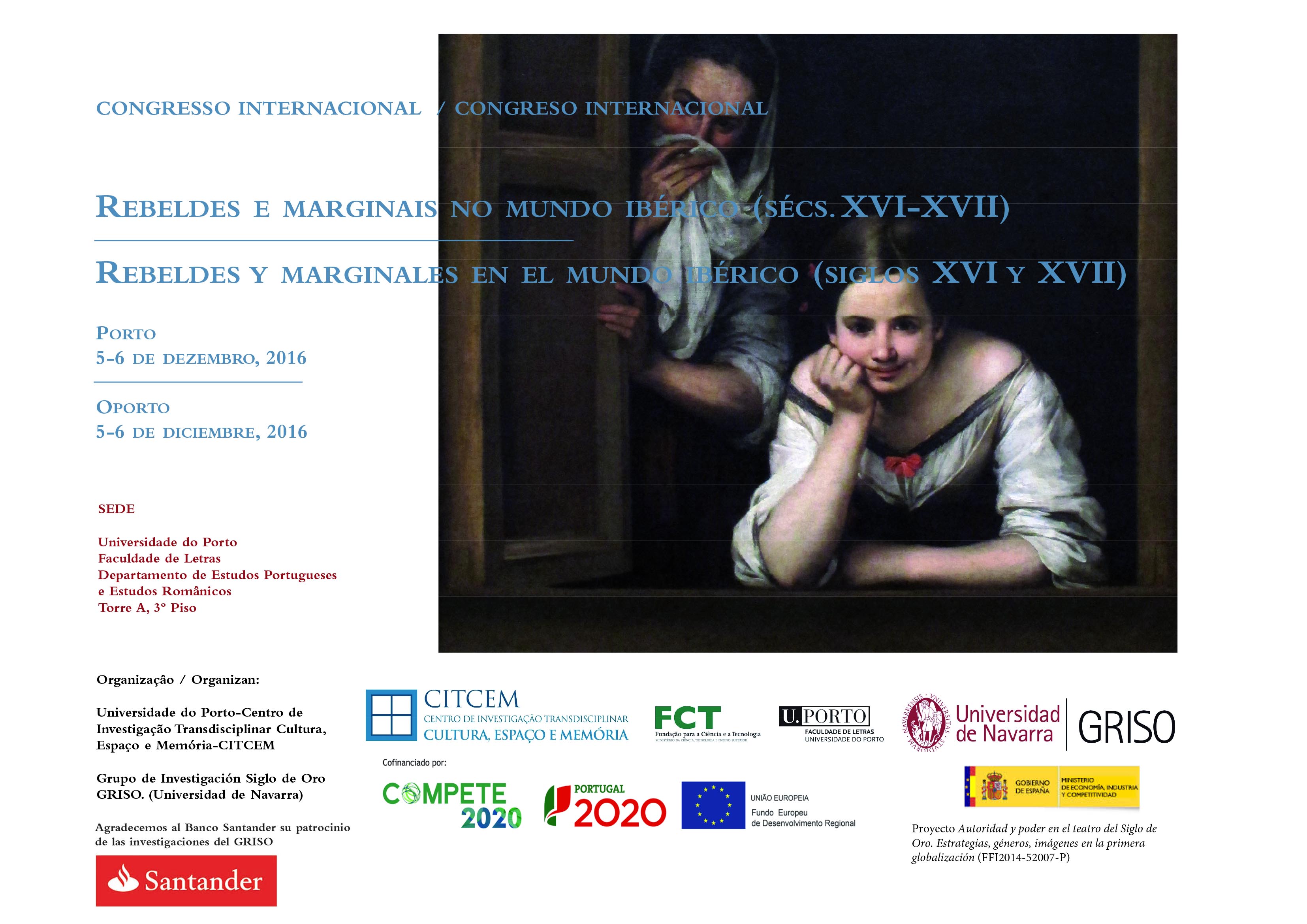 → Congreso Internacional «Cervantes y la burla en el Siglo de Oro», organizado por GRISO-Universidad de Navarra con la colaboración del Instituto de Estudios Auriseculares (IDEA), Pamplona, Universidad de Navarra, 17-18 de diciembre de 2018. [Cartel] [Programa] Congreso Internacional «La burla del poder y de la autoridad en el Siglo de Oro» / Congresso Internacional «A troça do poder e da autoridade no "Siglo de Oro"», coorganizado por GRISO-Universidad de Navarra y CITCEM-Universidade do Porto, Porto (Portugal), Universidade do Porto (Facultade de Letras), 13-14 de diciembre de 2018. [Programa] [Cartel]