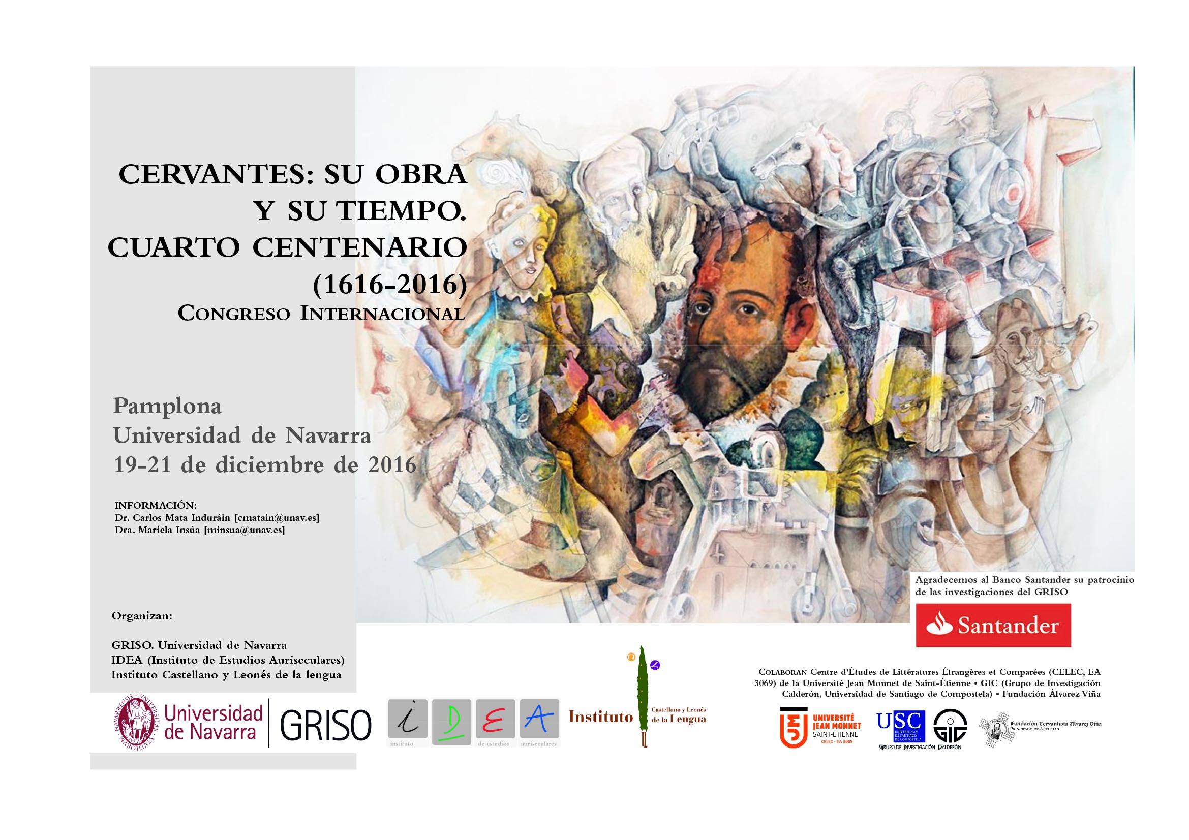 → Congreso Internacional «Lecciones cervantinas, 2. El Persiles en su IV Centenario (1617-2017)», organizado por GRISO-Universidad de Navarra, Pamplona (España), Universidad de Navarra, 14-15 de diciembre de 2017. [Cartel] [Programa]