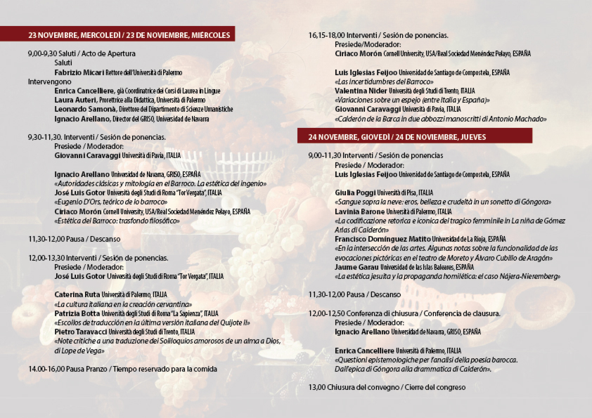 → Seminario Internacional «Sevilla y el Barroco hispánico», organizado por el Departamento de Literatura Española e Hispanoamericana de la Universidad de Sevilla y el Grupo de Investigación Siglo de Oro (GRISO) de la Universidad de Navarra, Sevilla (España), Aula de Grados de la Universidad de Sevilla, 12 de marzo de 2024. [Programa]