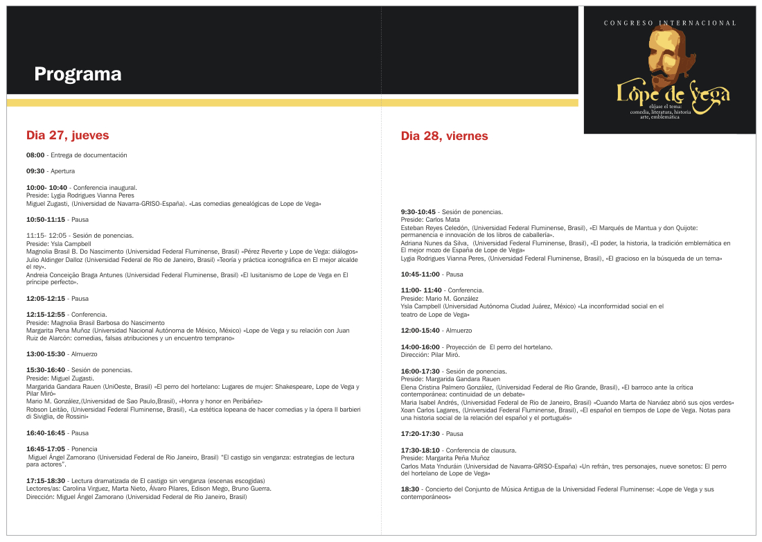 → Congreso Internacional «El Siglo de Oro en el nuevo milenio: Historia, Crítica y Teoría literaria» (celebrado en Pamplona). [Programa]