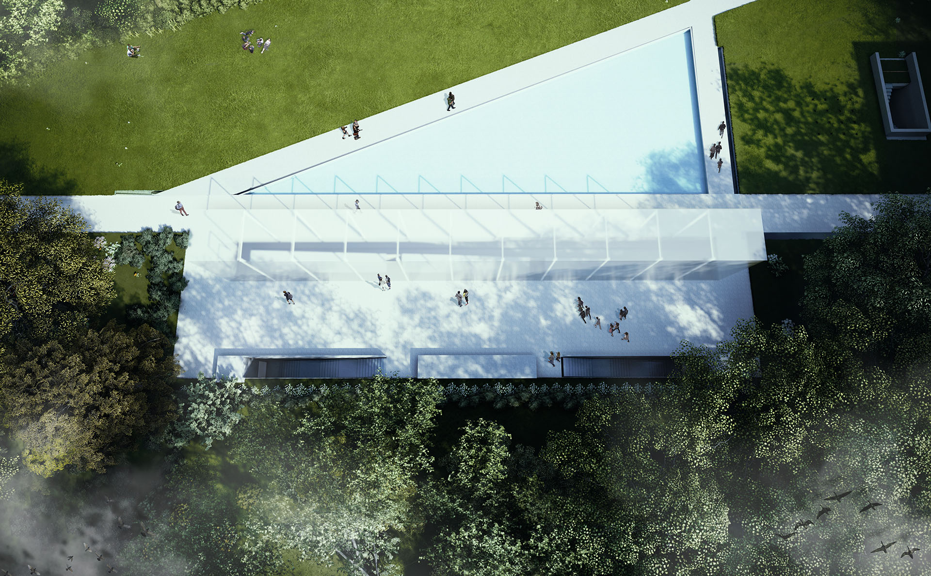 ALZADOS: La intervención se desmarca de su entorno, haciendo más flexible el generar un espacio enterrado de termas, alcanzando, a su vez, la necesidad de un espacio verde, un jardín con múltiples recorridos conforman una visual ‘infinita’ de la plaza. Este jardín está concebido con elementos vegetales que conforman distintos espacios sombríos donde poder disfrutarlos.
