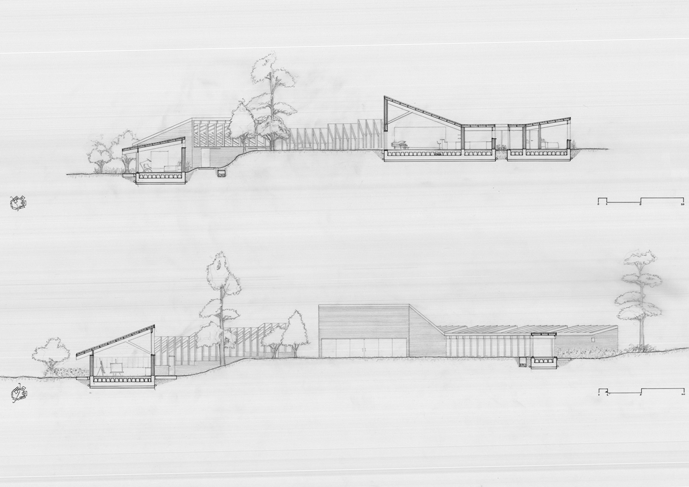 El complejo aprovecha la topografía para ensalzar el nivel de privacidad de los espacios, dejando las residencias de Lucía y Salomé en la parte baja y protegidas por el desnivel, mientras aprovecha la explanada verde como extensión de la zona social.