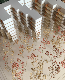 Para la construcción del centro se ha creado un catálogo de módulos prefabricados que varían en su composición según el uso. La solución modular se basa en un sistema de módulos de 4,5 x 4,5 metros, que pueden combinarse de manera independiente para crear diferentes configuraciones funcionales.